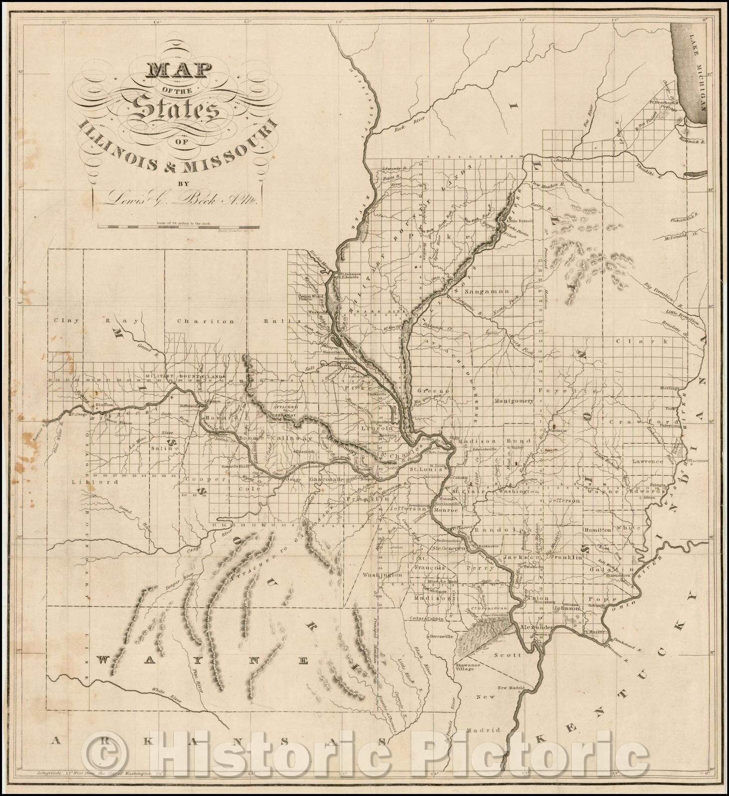 Historic Map Map of the States of Illinois & Missouri, 1823
