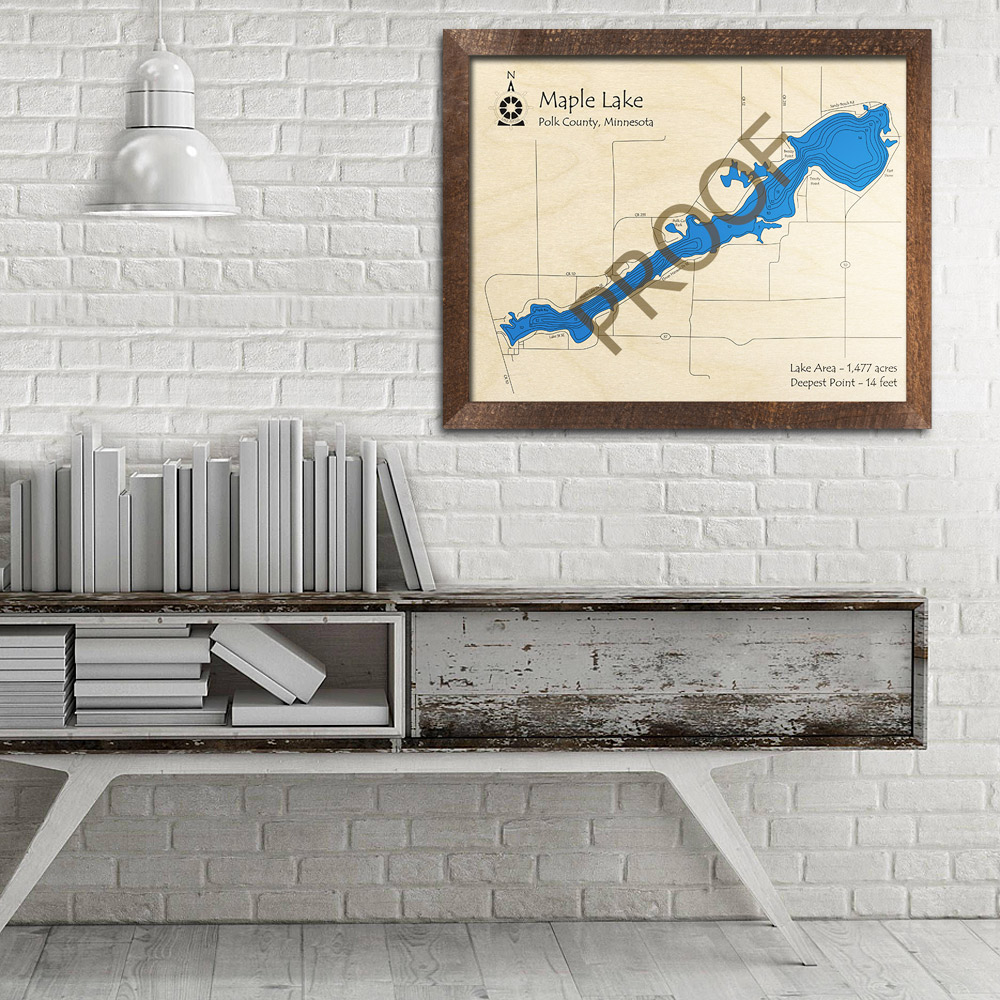 Maple Lake 3D Wood Map, Polk County Minnesota, Nautical Wood Wall Art