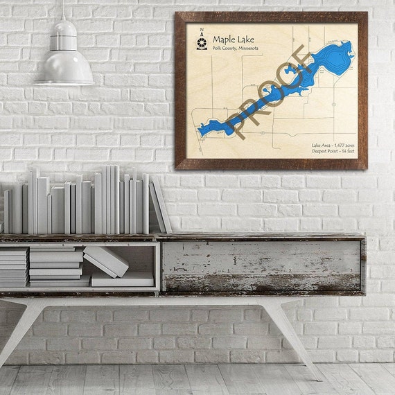 Maple Lake polk Cty MN 3D Wood Map Custom Nautical Map Etsy