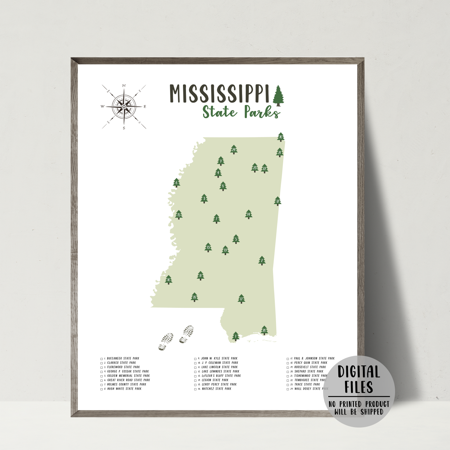 Mississippi State Parks Map | Mississippi Map | Gift For Traveler