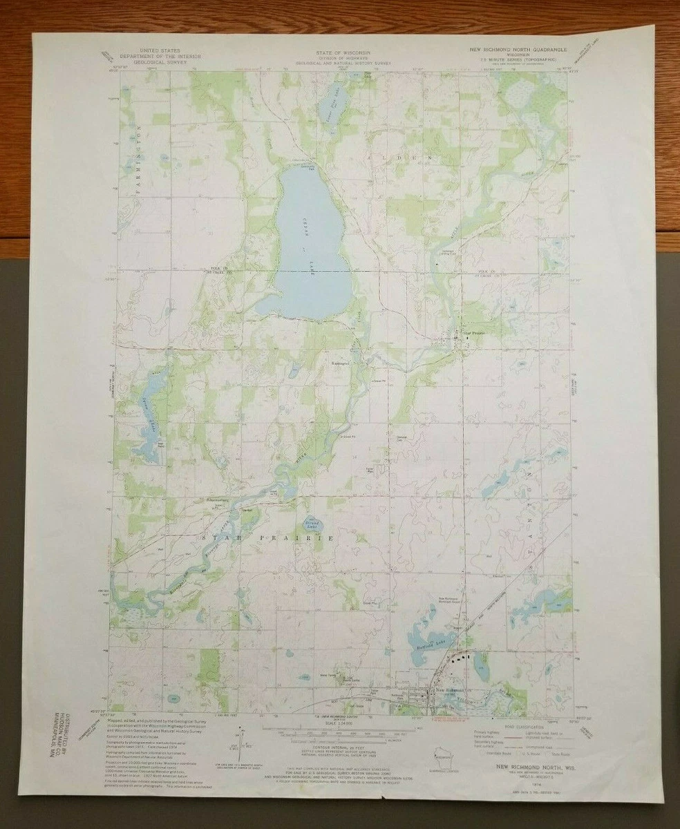 New Richmond North, Wisconsin Original Vintage 1974 USGS Topo Map