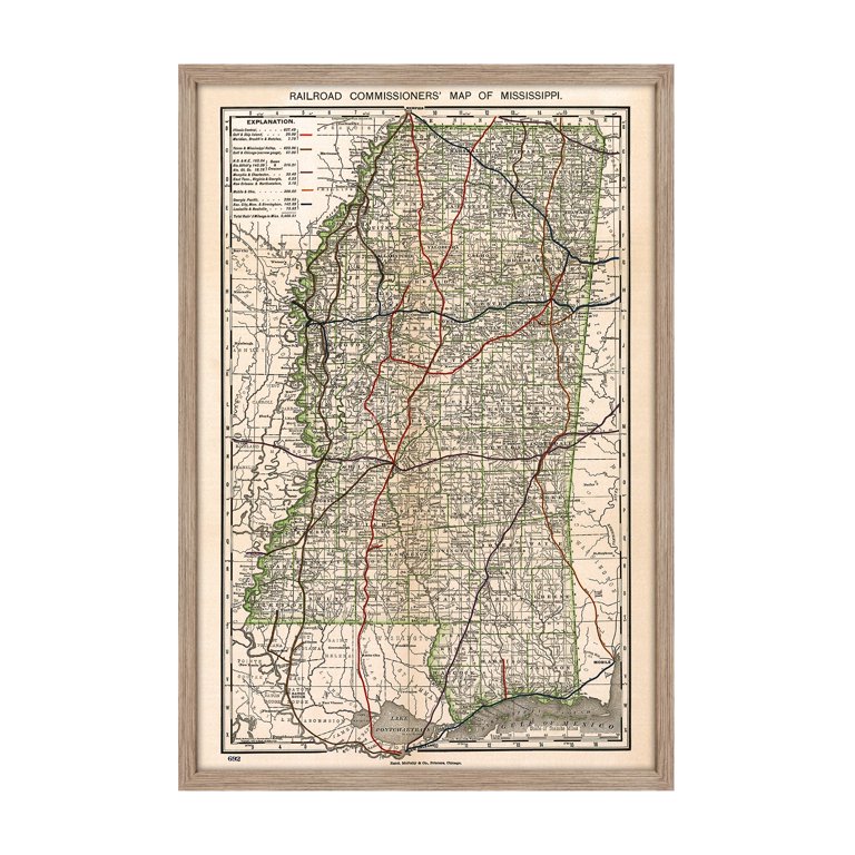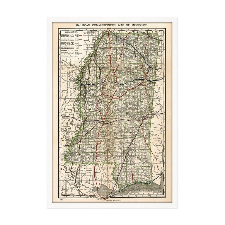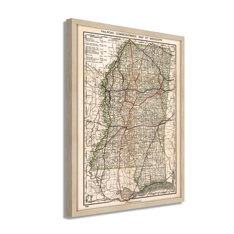 1888 Mississippi Map Framed Vintage Mississippi State Map Old